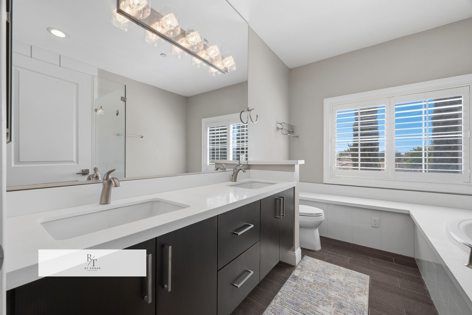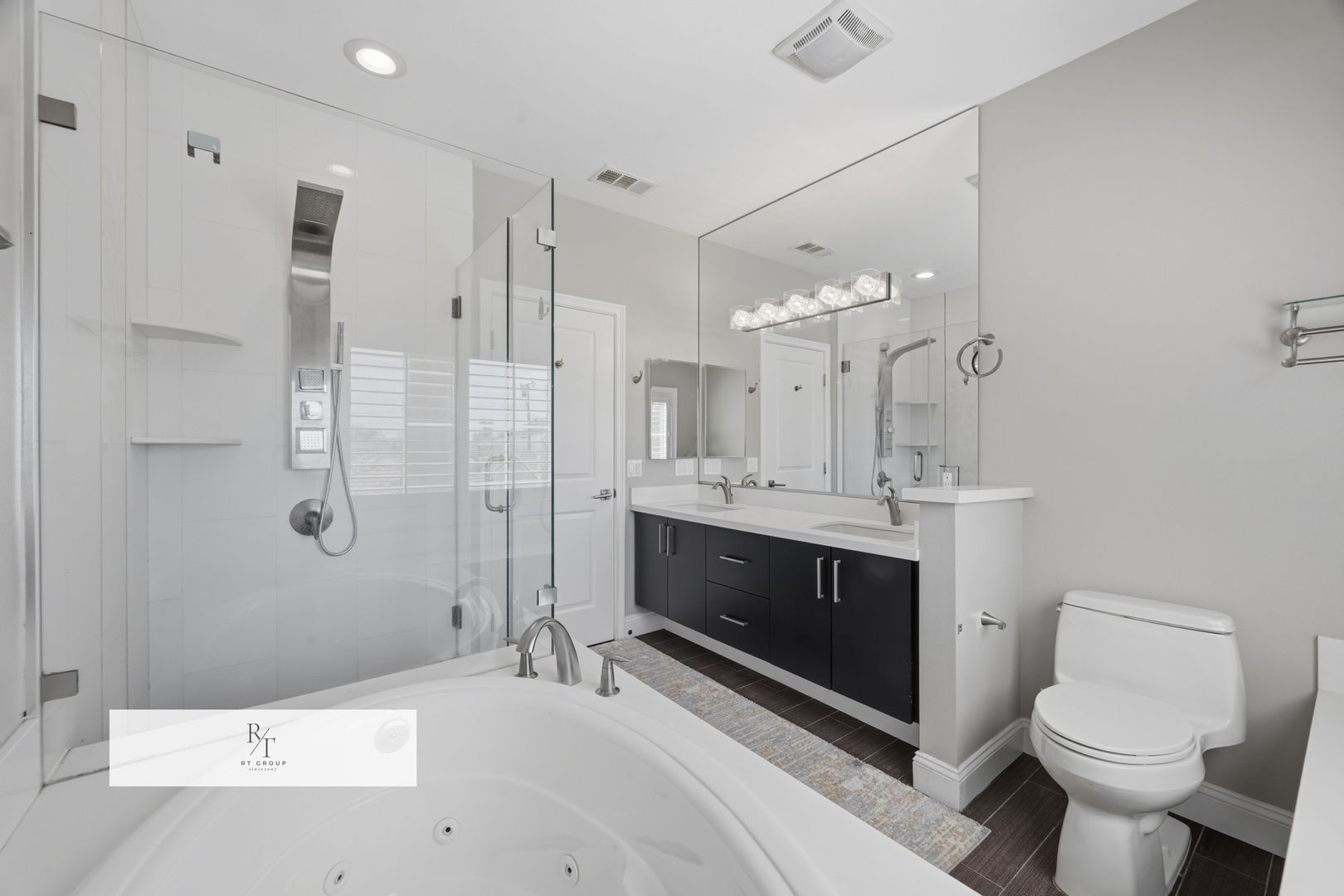 This home is equipped with modern luxury features throughout, including motion-sensing light switches, security system, smart thermostat, video doorbell, magnetic wooden shutters, tankless water heater, and recessed lighting.