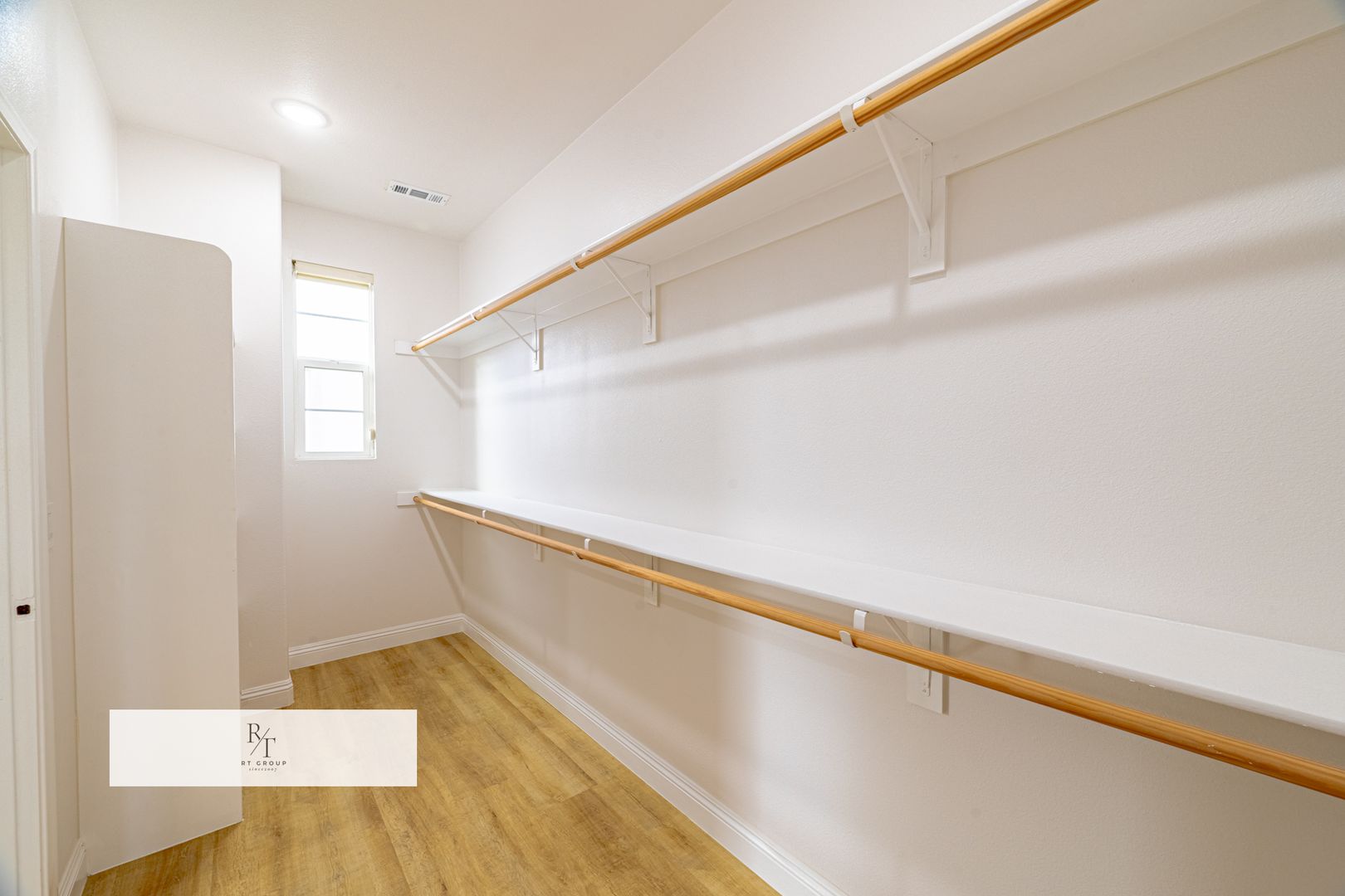 The primary bedroom features a generous walk-in closet, providing ample storage space.