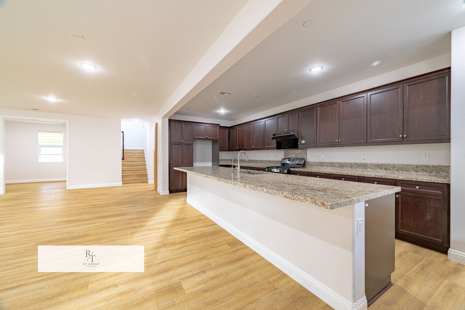 The home welcomes you with an open and bright kitchen that flows seamlessly into the dining area and inviting family room—perfect for everyday living and entertaining. Large windows allow plenty of natural light to fill the space, creating a warm and airy atmosphere. Beautiful flooring runs throughout the home, adding a clean and modern touch.