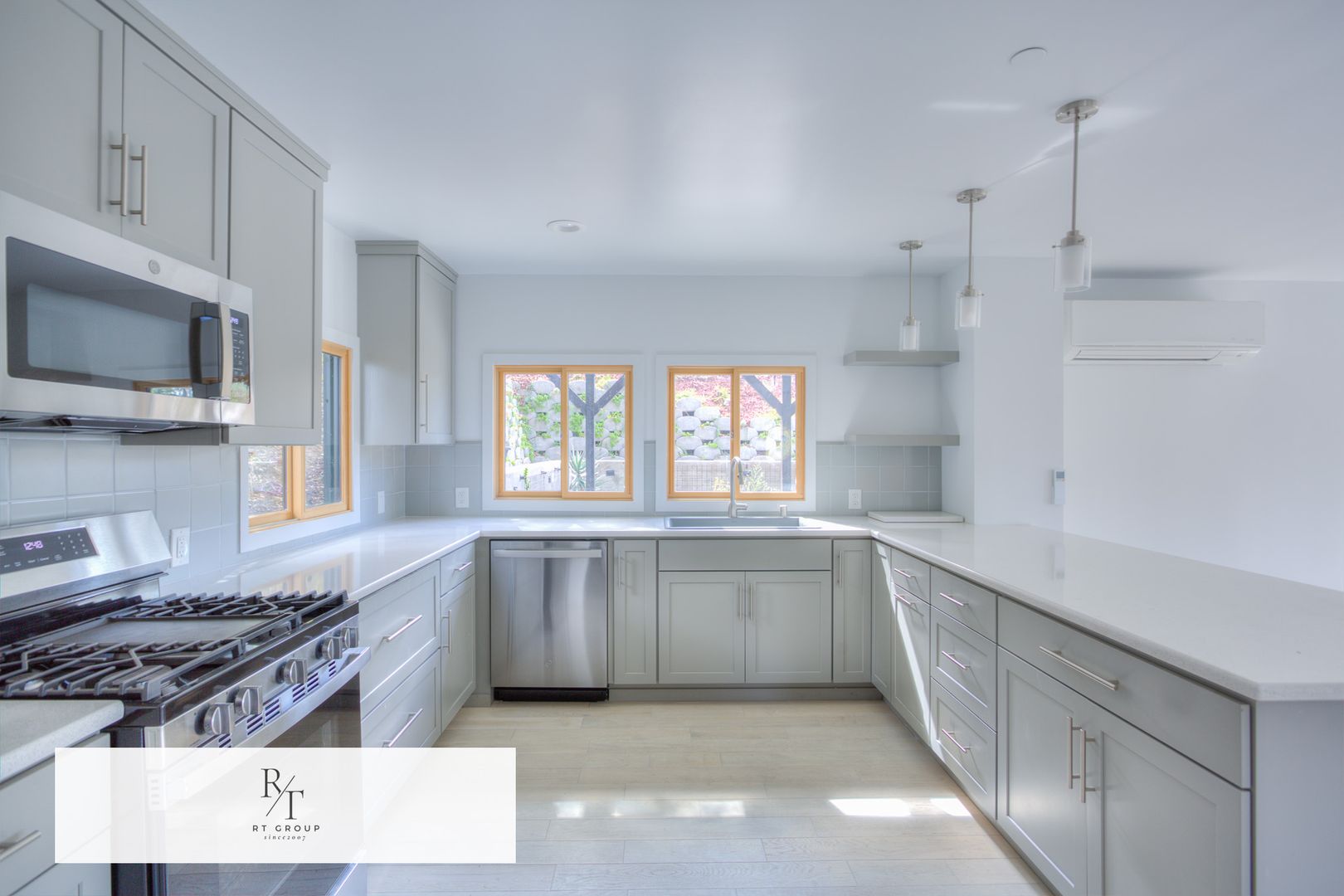 This stylish home features brand-new appliances, including a stove, dishwasher, and refrigerator. Each room is equipped with its own split A/C unit, ensuring year-round comfort.