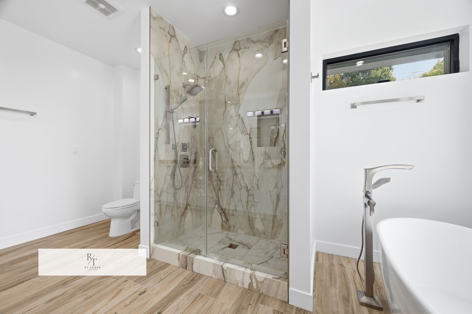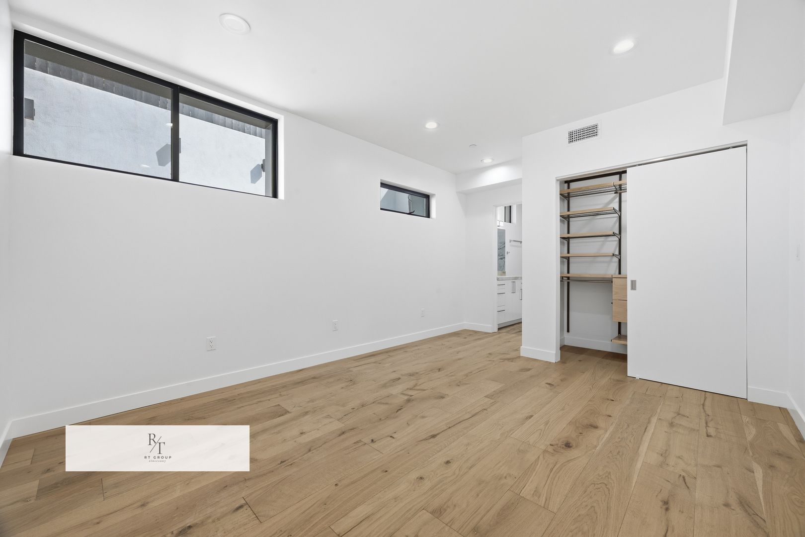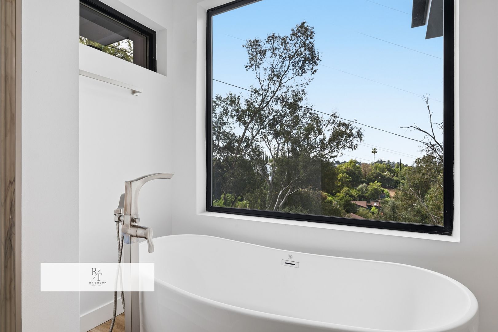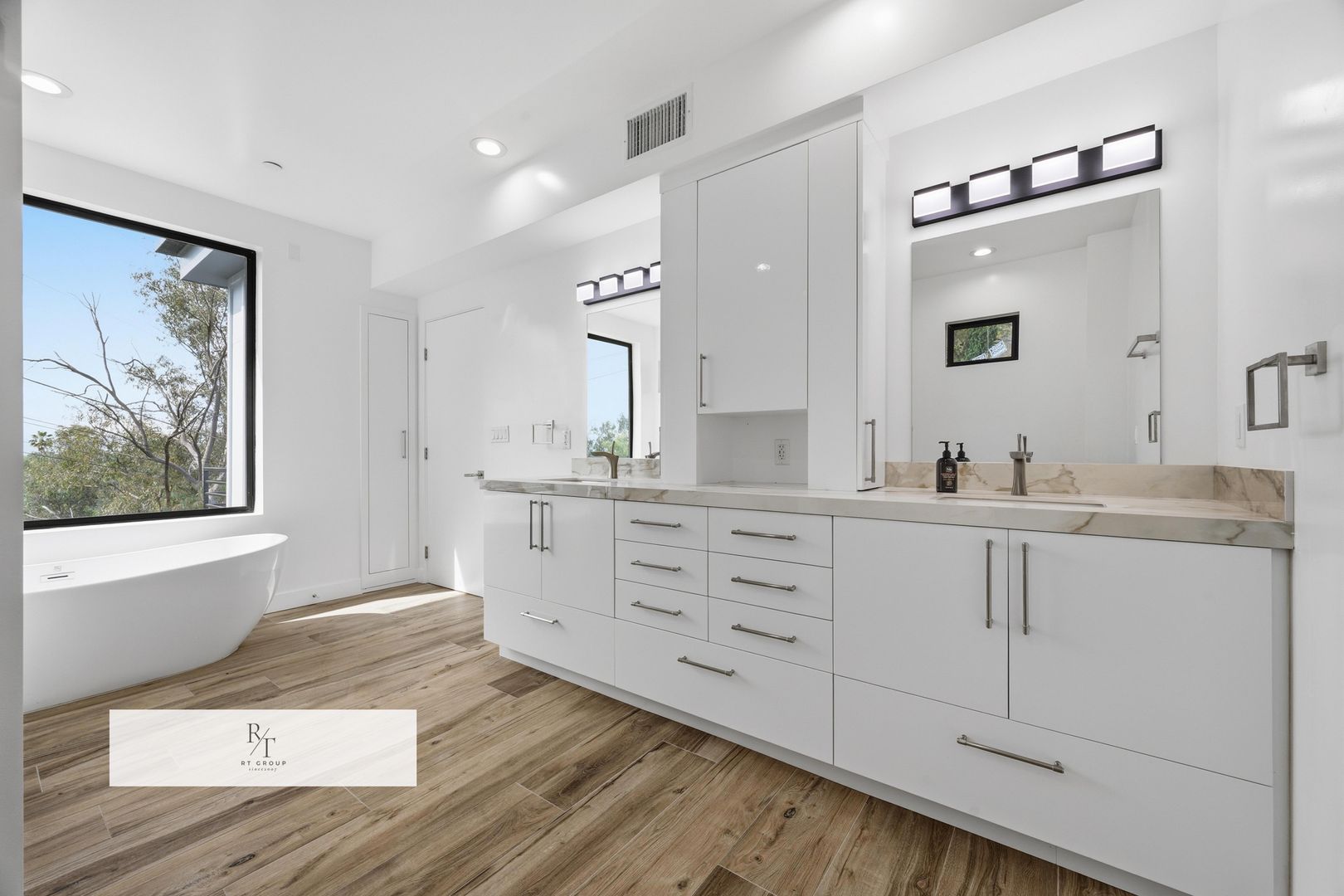 The second floor hosts the luxurious primary suite, thoughtfully designed as a private sanctuary. This elegant retreat features a spacious walk-in closet, expansive LaCantina triple-panel sliding doors, and a private indoor-outdoor terrace that invites in natural light and fresh air. The spa-inspired primary bath offers a soaking tub, oversized walk-in shower with bookmatched porcelain slabs, and refined designer finishes throughout.