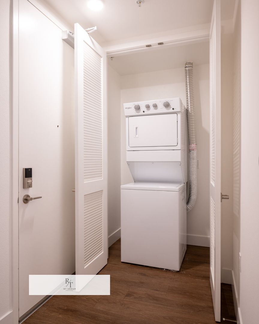 The primary bedroom has its own bathroom, and laundry is conveniently located in the unit.