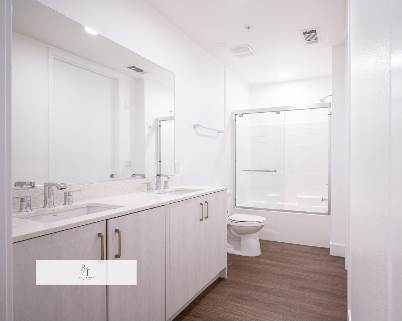 Unit 219 is a 2-bedroom, 2-bathroom condo with 1,003 sq. ft. and plenty of outdoor garden space. The open kitchen flows into a bright living area filled with natural light.